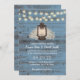 Rustic Baby's Bandeand Blommigt Lantern Dusty Blue Barn Wood Wedding Invations.