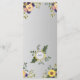 Elegant, modern, botanisk, rustik wood lila bröllop-meny med vattenfärgade blommor, solblommor och grön.