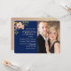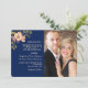 Rustic Blommigt Rosa Navy Blue Photo Bröllop Inbjudningar