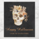 Vattenfärg Skull med Flowers Halloween Vin-etikett.