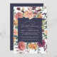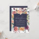 Rustic blommigt inbjudningskort för möhippan har en midnattsblå fyrkant inslag med dina möhippor i vitt, inramad med vattenfärgade blommigtar och botaniska ämnen i rikens hösthuvar av plum, dammig ro, goldenrod och oliver. Chicens val för höst- eller höstmöhippor.