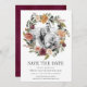 Vår Rustic Bloom sparar datumkortet ramar din favoritbild på förlovningen med en rund krans av färgat ro och peonblommor i rikens höstskuggor av Marsala, burgundy, rosa och grädde, accentuerade med mörk grönt löv och löv. Ett modernt val och val av elegant för höst- eller höstbröllop. Anpassa med namn, bröllop-datum, plats och bröllop webbplats med hjälp av fält.