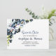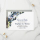 Rustic Blue Blommigt Bröllop Spara Datumet
