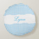 Rustic Blue Gingham Personalized Name Rund Kudde