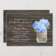 Rustic Blue Hydrangea Mason Burk Wood Inbjudningskort för möhippa.