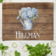 Lägg till en charmerande rustik i köket med den här personlig kökshandduken för lantbruk och stil! Med ett vackert detaljerat vattenfärgsbevattning som kan fyllas med lush blue hydrangeas, ställs denna handduk mot en rustik träbakgrund för en mysigt vintage. Texten visas i en elegant, ett dekorativt serif-teckensnitt i lätt dammigt blått, med ett klassiskt men modernt tryck. Helt anpassade, du kan anpassa den med ett familjens namn, ett speciellt meddelande eller ett favoritcitat - skapar det vara en perfekt gåva till uppvärmning i hemmet, bröllop eller vilket tillfälle som helst. Kraftfull från högkvalitativ, absorberande väv, lika funktionell som vacker! Anpassningstext kan redigeras eller tas bort (utom grafik). Om du har några frågor eller problem med designen kontaktar du designern. Klicka på knappen Anpassa om du vill ändra designen på egen hand.