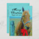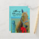 Rustic Blue jul Horse Red Bow Helg Vykort