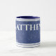 Rustic Blue Personlig Namn Mugg är perfekt att hålla alla dina utsökta och kreativ drycker eller pennor och färgpennor i en roligt söt blå och vit rustik cosmisk stjärna mönster mugg. Lägg enkelt till din egen fläck för att göra detta till ditt eget unika påstående utan problem.