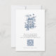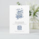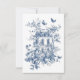 Rustic Blue Toile De Jouy QR Code Bröllop OSA. En blå toile de jouy blommigt-design finns ovanför texten och QR-koden längst fram och större på baksidan.