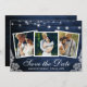 Rustic Blue Wood String Ljus och Snöre 3 Photo Save Date Förlovning Announcement Card