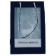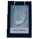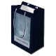 En presentpåse med blå bakgrund av faux-wood. Skickat över ytan är en silhuett av en renar med stora antenner.