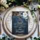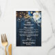 En elegant bröllop-design med elegant-kalligrafi kompletterad med underbart blått trä, trädgårdssträng ljus och vit blå blommigt med guld glitter. Du kan anpassa det här med Bröllop-menyn.