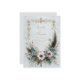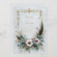 Create a soft and romantic atmosphere with this exquisitely detailed invitation design. The artwork features a graceful bottom border composed of large, pale blush cosmos flowers and eucalyptus leaves, flanked by sweeping feathers in neutral tones. The top of the invitation is crowned with a delicate, antique-style gilded flourish that adds a touch of royalty to the rustic composition. The clean, off-white background allows the intricate botanical and feather details to stand out, making it a perfect blend of modern sophistication and vintage charm. This gentle and airy design is an impeccable choice for a spring meadow ceremony or a relaxed countryside reception. You might also select this lovely aesthetic for a sophisticated bridal shower brunch, a sweet sixteen birthday party, or a gender-neutral baby naming ceremony. This artistic floral border is also perfectly suitable for boutique skincare brand packaging, artisan florist business cards, or luxury spa gift vouchers.