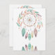 Rustic Bohemian Dream Catcher design som fångar det fria sinnet hos Bho-chic bröllop. En drömmande vattenfärgsdröm catcher förankrad med fjädrar, blommor, och pärlor skapar en viskartad brännpunkt. Mjuka jordtoner och jordpasteller framkallar en romantisk, rustik atmosfär. Perfekt för inbjudningar, välkomsttecken eller favärdestaggar, den här designen är perfekt kostym utomhus eller festivalinspirerad bröllop.