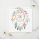 Rustic Bohemian Dream Catcher design som fångar det fria sinnet hos Bho-chic bröllop. En drömmande vattenfärgsdröm catcher förankrad med fjädrar, blommor, och pärlor skapar en viskartad brännpunkt. Mjuka jordtoner och jordpasteller framkallar en romantisk, rustik atmosfär. Perfekt för inbjudningar, välkomsttecken eller favärdestaggar, den här designen är perfekt kostym utomhus eller festivalinspirerad bröllop.