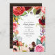 Boho blommigt bohemian bröllopsinbjudan med peonblommor och anemonblommor, grönska och fjädrar i accenter av burgundplommon, och rosa . Perfekt för varje tema eller trädgårdsbröllop.