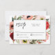 Ett snyggt charmerande bröllop-svarskort med boho-stilning med en färgstark ram av blandade vattenfärgspennor, ro, anemoner, vilda blommor och grön omgivning. Paletten Silvio färg innehåller riker av persikor, benvita, burgundrött och grönt. Byt ut provets OSA mot det svarsdatum som krävs. Kortets baksida är en samordnande skugga av sage grönt. Du kan anpassa färg bakåt till valfri färg genom att välja "klicka för att anpassa ytterligare" grund i textmallen och välja en annan bakgrund färg. Färg-systemet är ett lämpligt val för bröllop under varje årstid.