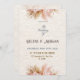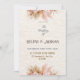 Den här inbjudan från elegant bröllop innehåller mjukt ro, torkat handflatan-löv och pampasgräs på en texturerad gräddbakgrund. Perfekt för rustik, boho eller neutralt-tonat bröllop, den här romantiska designen anger tonen för ett charmerande firande. Idealisk för moderna brudar som vill ha en mjuk blommigt, estetisk med en aning naturinspirerad elegans.