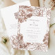 Den här elegantens bröllopsinbjudan till blommigt innehåller en modern botanisk design med mocha mousse-bruna blommor konturer. Perfekt för romantiska, rustiska eller trädgårdsbröllop kombinerar enkelhet med sofistikering. Kortets baksida innehåller en bekväm QR-kod för OSA och mer information om bröllop. Utforska matchande produkter för att slutföra din bröllop-stationsuppsättning och skapa en sammanhängande titt för din speciella dag!