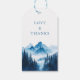 Rustic Boho Blue Watercolor Mountains Bröllop Presentetikett