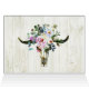 Rustiska utandningsluften av bohemisk blommigt och skallen av långkorniga kor över vita tvättat träplankar Bakgrund tack vare ditt kort.