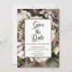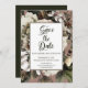 En ethersk boho-blommigt i vintervita och dammiga rosor med säsong evergreen grey är underlagd över en dammig rosa bakgrund som uppmanar dina gäster att "rädda datumet" för vad som säkert är en minnesvärd rustik bröllop tillfälle. Baksidan har en mörk med grön bakgrund. Text färg är mörk vergreen. Lägg bara till namn och bröllop för att slutföra. "Spara datumtexten" kan bara redigeras av designern, men återstående text kan redigeras. Sammansatt design efter Helgdag Hearts-design (reserverade höger).
