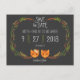 Den här charmerande bröllopsinbjudan innehåller ett höft- och snyggt-kattpar omgivet av ett söt garland med handdragna löv i en arrangemang krans.