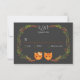 Den här charmerande bröllopsinbjudan innehåller ett höft- och snyggt-kattpar omgivet av ett söt garland med handdragna löv i en arrangemang krans.