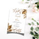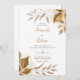 Den här elegantens roliga bröllopsinbjudning visar upp varma örhänta toner med vattenfärgsbrun och guld löv som fäster hörnen. Den minimalistiska layouten parar modern typografi med ett känsligt skript, perfekt för boho, höst, utomhus eller naturinspirerat bröllop. Anpassa enkelt dina uppgifter om bröllop så att de blir verkligt dina.