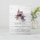 Skål till Kärlek blommigt boho bröllopsinbjudan med accenter av gräns, violett, plommonröd vin, mörkens lila och rosa.