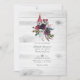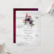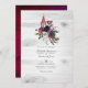 Skål till Kärlek blommigt boho inbjudningskort för möhippan med accenter av gräns, violett, plommonröd vin, mörkens lila och rosa. Perfekt för varje tema eller trädgårdsbröllop. QR-koden på andra sidan går till din bröllop-webbplats där människor kan lära sig mer och osa.