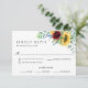 En personligt bröllp-OSA kort med en underbar bukett av rustiska vattenfärger solblommor, burgundy ro och eukalyptus greenery. Framsidan har det svarsdatum och måltidsalternativ som krävs för 3 olika måltidsalternativ. Anpassa texten till önskad text.