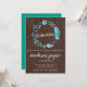En färgdesign för remsan med rustik vattenfärg för ett baby-engagemang, med en blommigt med blå/grönt-vattenfärg och en mörkare träbakgrund. All text är vit och innehåller "engagemang" inuti andedräkten. Inbjudan är i teal.
