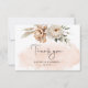 Send your heartfelt gratitude with this Rustic Boho Wedding Thank You Photo Card. Featuring blush peonies, pampas grass, and earthy neutral tones, this elegant card is perfect for rustic, bohemian, or garden-themed weddings. Personalize with your names, wedding date, and a special message on the back. Plus, you can easily upload your favorite wedding photo to create a memorable keepsake for your guests.