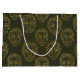 Rustic botanical face line pattern gift bag featuring abstract facial outlines blended with delicate leaves and floral accents on a warm brown background. Vintage-inspired and minimalist, this elegant design has a natural earthy aesthetic ideal for rustic decor lovers, boho style fans, botanical enthusiasts, and modern farmhouse admirers.