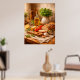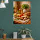 A rustic still life featuring fresh bread, olive oil, herbs, and warm textures. Inspired by Mediterranean cuisine, this artwork adds natural warmth and authenticity to kitchens, dining areas, or restaurant interiors.