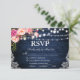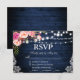 Rustic Bröllop Blue Wood String Ljus Snöre Watercolor Rosa Blommigt OSA kort med val av måltider