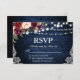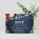 Rustic Bröllop Blue Wood String Ljus Snöre Watercolor Burgundy Blommigt OSA kort