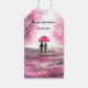 Rustic bröllop kärlek par körsbär blommar träd presentetikett