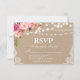 Rustic Bröllop String Ljus Snöre Watercolor Rosa Blommigt OSA Kraft Card