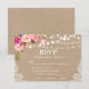 Rustic Bröllop String Ljus Snöre Watercolor Rosa Blommigt OSA Kraft Card - måltider