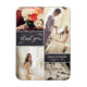 Grattisar på bröllop. De fantastiska bilderna från bröllop kan delas med dina gäster genom det här tack du ger. Välj ditt favoritprogram i fyra bilder och gör det till ditt eget. Anpassa den med namn och bröllop. Tips! Du kan välja foton av hederliga gäster för att göra deras fotomagnet till ett omhuldat "tack"-kort, minnesvärt och tankfullt.