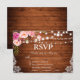 Rustic Bröllop Wood String Ljus Snöre Watercolor Rosa Blommigt OSA kort med val av måltider