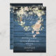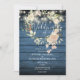 Med en delikat blommigt- och söt-sträng ljus på en blå, rustik träbakgrund kan den här inbjudan till chic-bröllop vara personlig med din speciella bröllopsdag. Den omvända har en matchande blommigt garland som ramar in ditt monogram initialer i vit elegant på en rustik träbakgrund. Designad av Thisisnotme©