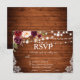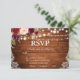 Rustic Bröllop Wood String Ljus Snöre Watercolor Burgundy Blommigt OSA kort med val av måltider