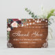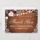 Rustic Bröllop Wood Watercolor Burgundy Marsala Blue Blommigt String Ljus Snöre Tack för ditt kort