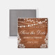 Rustic Bröllop Wood Ljus Snöre Spara datumkvadratmagnet