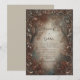 Invite your loved ones with the timeless, moody elegance of this vintage-inspired woodland masterpiece. This design features a majestic, ornate bronze filigree frame with intricate baroque scrollwork that gracefully borders the entire composition. The central space is a weathered, misty stone texture that transitions into a shadowy, autumn forest backdrop with ghostly tree silhouettes and warm copper leaf spray accents. The rich, earthy palette of sienna, bronze, and teal creates a sense of historic mystery and organic luxury. This wedding invitation is the perfect choice for a rustic fall ceremony, a formal gothic celebration, or an enchanted woodland-themed gala. It ensures your event is introduced with a sense of high-end drama and antique charm from the moment it is received.