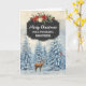 God jul för broderkort med den rustiska land-kritan mönster och snöfärgsskogar med hjort och fåglar.