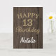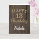 Rustic Brown och Guld Glitter 13:e födelsedagskort Kort